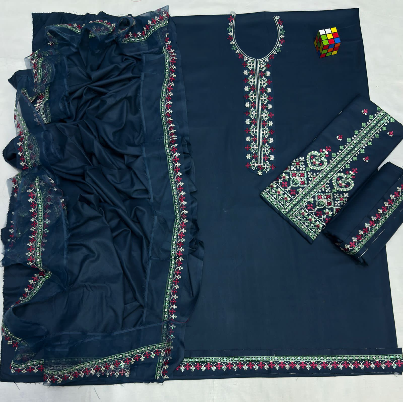 ✔️ Dhanak Plain Shawl (4 Side Border Multi-Head Sequence Embroidered patch )