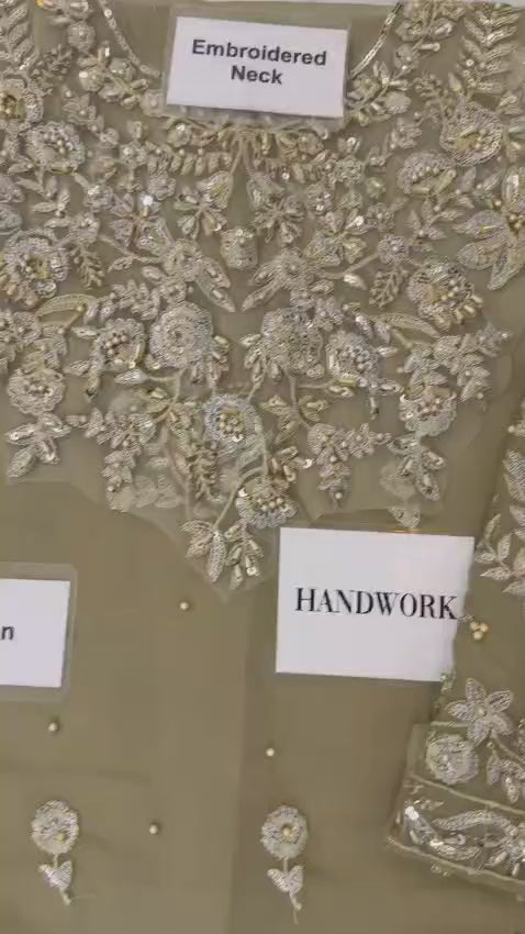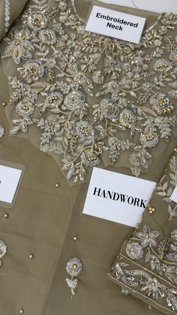 * Embroidered Sequence Work Addawork Chiffon Sleeves